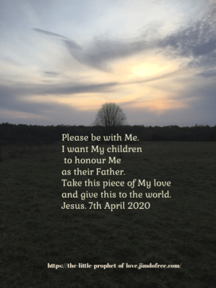 Jesus said: “My son, you are seeing tonight how difficult it will be to even pray together in one place. Your politicians and medical people are discouraging groups over ten from getting together in order to minimize the spread of the corona virus. You will soon see a harsher shutdown when your virus numbers increase, especially in the fall when the virus will be more deadly. You may be restricted to pray at your homes.”