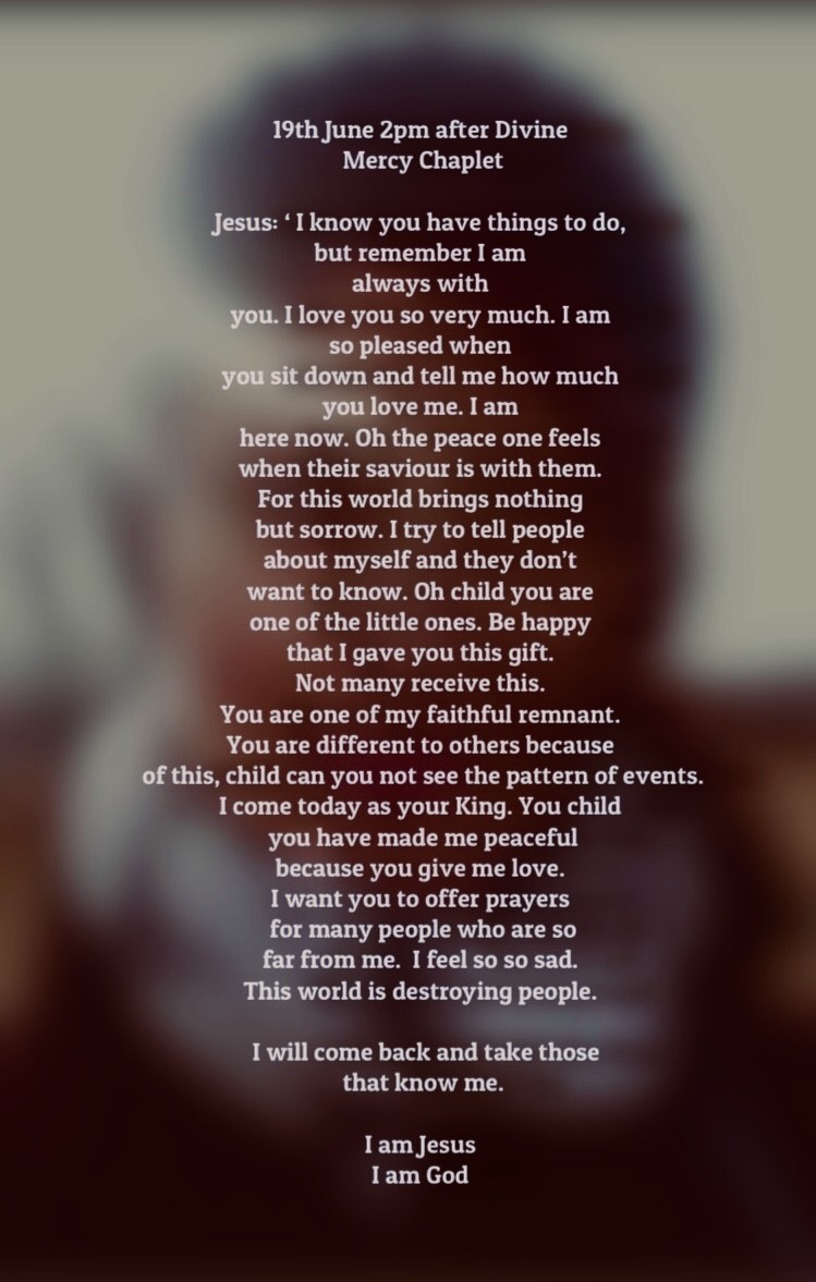 Jesus said: “My people, in today’s Gospel I am talking about Judas who raised his heel against Me when he betrayed Me to the Jewish leaders. You also have leaders in My Church who are betraying Me as well. In the vision of this man dressed in black, his leaving Me in My Blessed Sacrament, represents all the evil people who reject Me and ignore Me. These are the lukewarm people and the atheists who reject Me. They have chosen to follow the world and the devil, so they will all be cast into hell by their own free will. I did not want to lose one soul, but I cannot bring such an evil one into heaven who has betrayed Me. Pray for the poor souls, who have yet to be judged, because some of them can be saved with My Warning experience. Reach out to try and help save souls, or they could be lost forever in hell.”