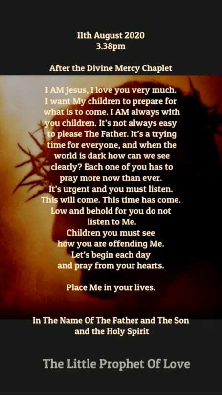 https://maryrefugeofsouls.com/2020/07/25/jesus-christ-to-the-little-prophet-of-love-each-day-draws-closer-to-the-events-spoken-of-for-many-years-now-this-event-coming-will-shock-most-children-so-much-this-time-next-year-will-be-quite/