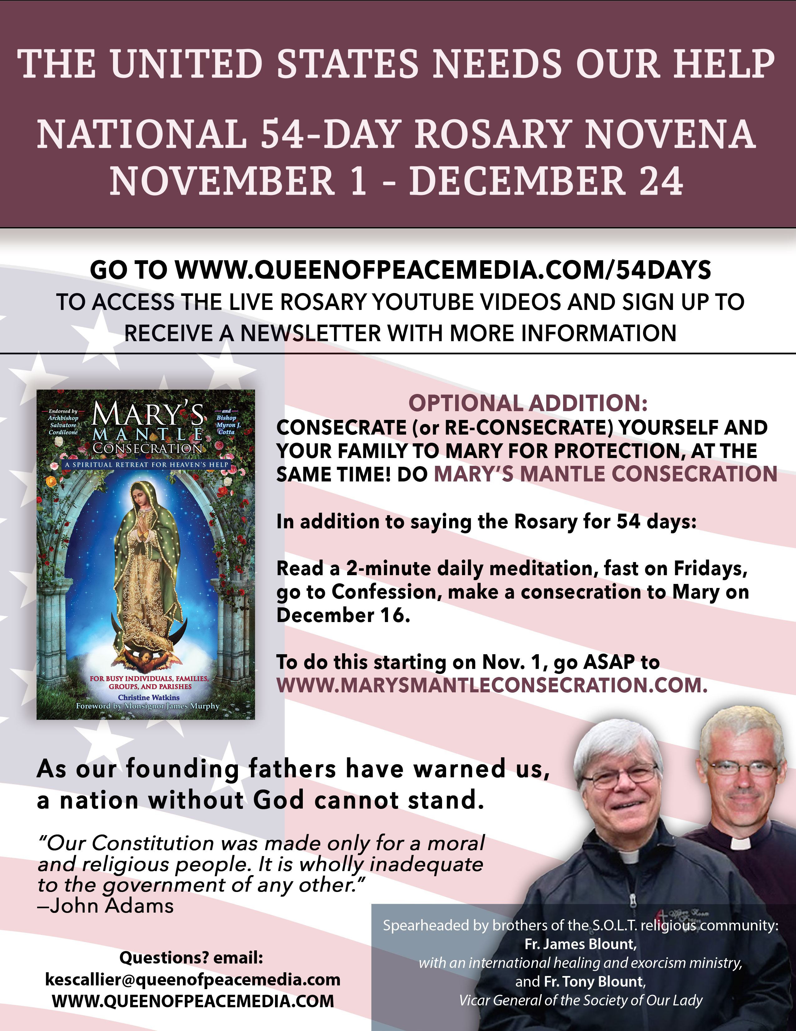 And secondly, if you would like to participate in a 54-Day Rosary Novena for the USA, please see this website: https://queenofpeacemedia.com/54days/