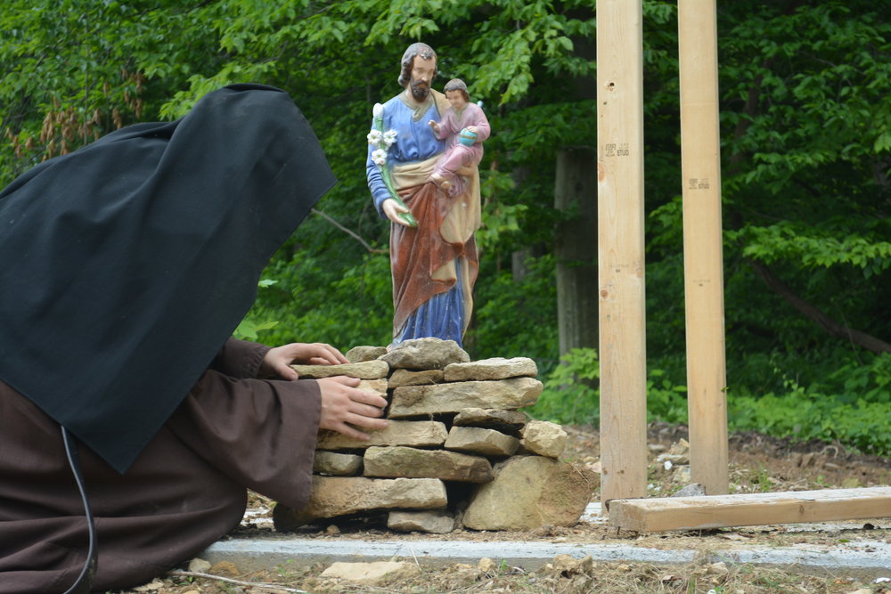 In their own words, “The Nuns are building a monastery to last a thousand years. Inspired by their Carmelite roots in Spain and the colonial architectural style of their local surroundings in Gettysburg, PA, the Nuns have chosen to use only the most traditional methods of stone laying and timber framing. Their goal is to provide a warm and loving home for our Beloved Lord, a place to honor and serve Him all the days of their lives.”