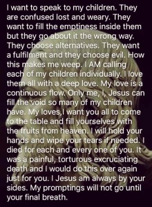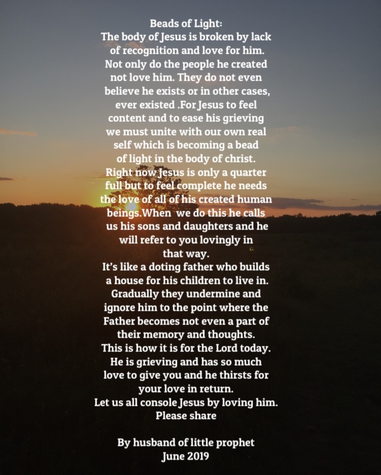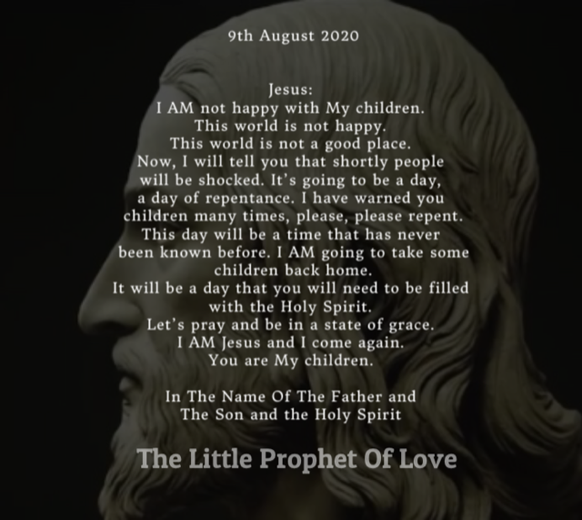 Note: When Jesus wants messages made public The Little Prophet of Love gets interference from the enemy. Jesus has said these messages contain blessings so hearts will change and people will be saved. This has woken the enemy out of his comfort of control and he is enraged by these messages going out into the world and spreading.