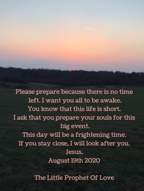 Paragraph from a message today, August 30, 2019 from Jesus Christ: